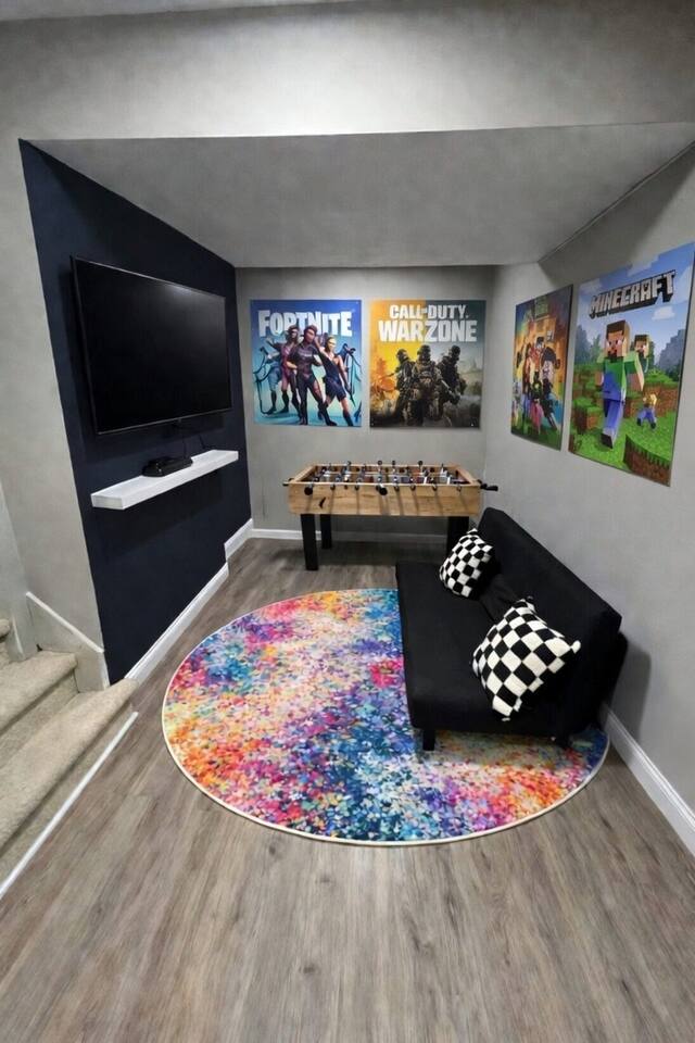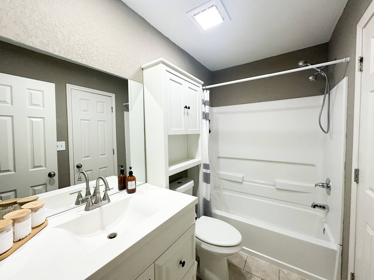 The space Welcome to Your Home Away from Home Step into an amazing home, perfect for relaxing and entertaining. Bedrooms- Bedroom 1: A luxurious king-size bed, flat-screen TV, and an en-suite jack and Jill bathroom Bedroom 2: A cozy queen-size bed, flat screen tv and full closet Bedrooms 3 double full-size bunk bed and closet Bedroom 5: A 2nd master, featuring a large comfy king sized bed, flat screen tv and an en-suite half bathroom Living Areas: Kitchen- Fully equipped for your culinary needs, Cooking Utensils: Pots, pans, bakeware, knives, cutting boards, and various cooking tools. Dining Equipment: Plates, bowls, cups, glasses, silverware, and serving dishes. Small Appliances: Keurig duo Coffee maker (Keurig and traditional pot), toaster, and microwave. Basic Pantry Items: Salt, pepper, sugar, oil, vinegar, and other common cooking staples. Note: While we provide the basics, you may want to supplement with your own favorite spices, condiments, or specialty ingredients. Living Area- There is a spacious living room and family room with comfortable seating, large-screen TV Game room & games- multi use game table with air hokey table, foosball and board and cards games. tv with a game console attached with over 40,000 classic games Laundry Room- In-unit laundry facilities with a washer and dryer are available for your convenience. Outdoor Features- FIrepit: Large fire pit Others- Wi-Fi: High-speed Wi-Fi internet access throughout the home. Extra fees may apply for early check-in or late check-out when available.