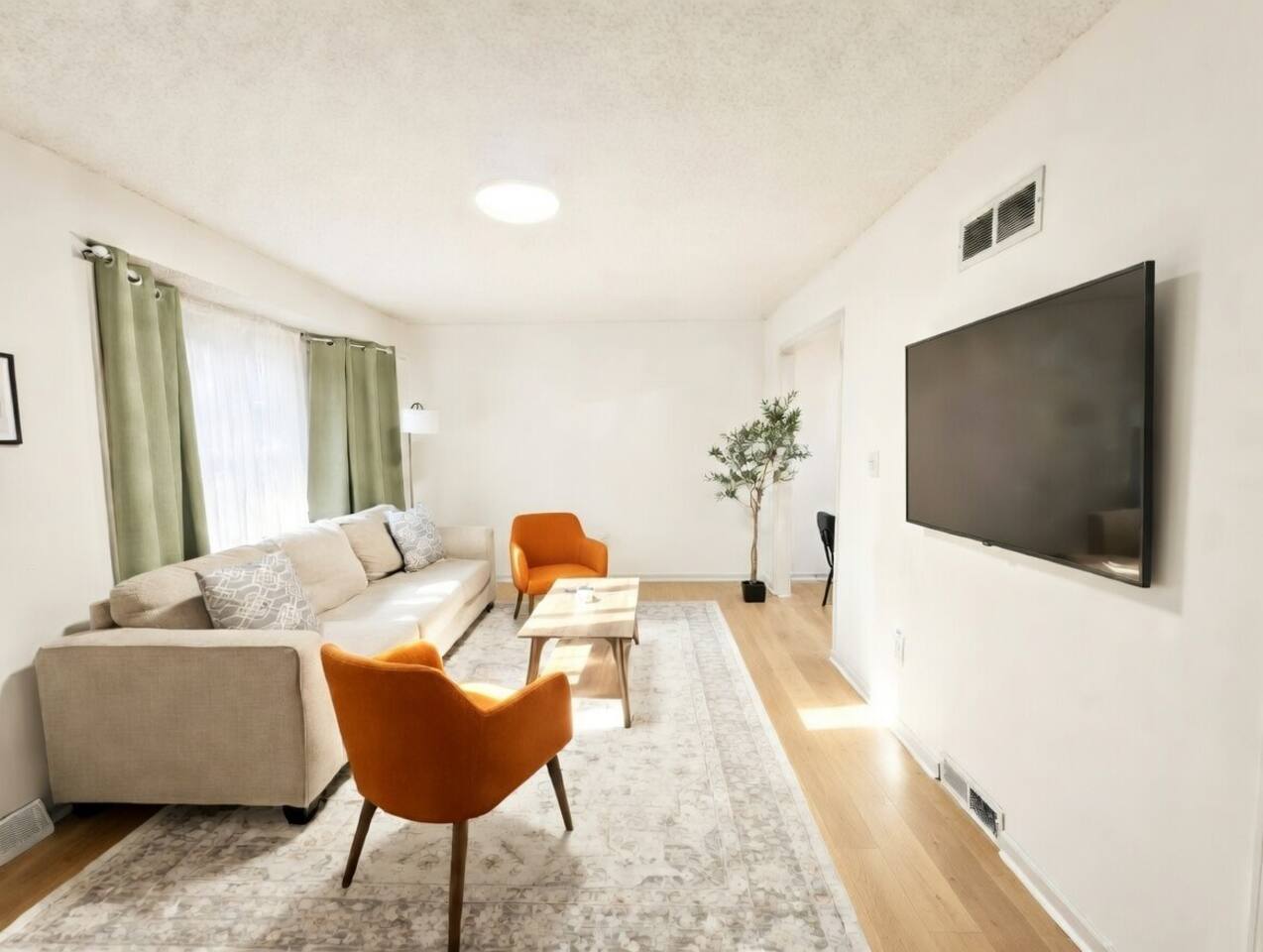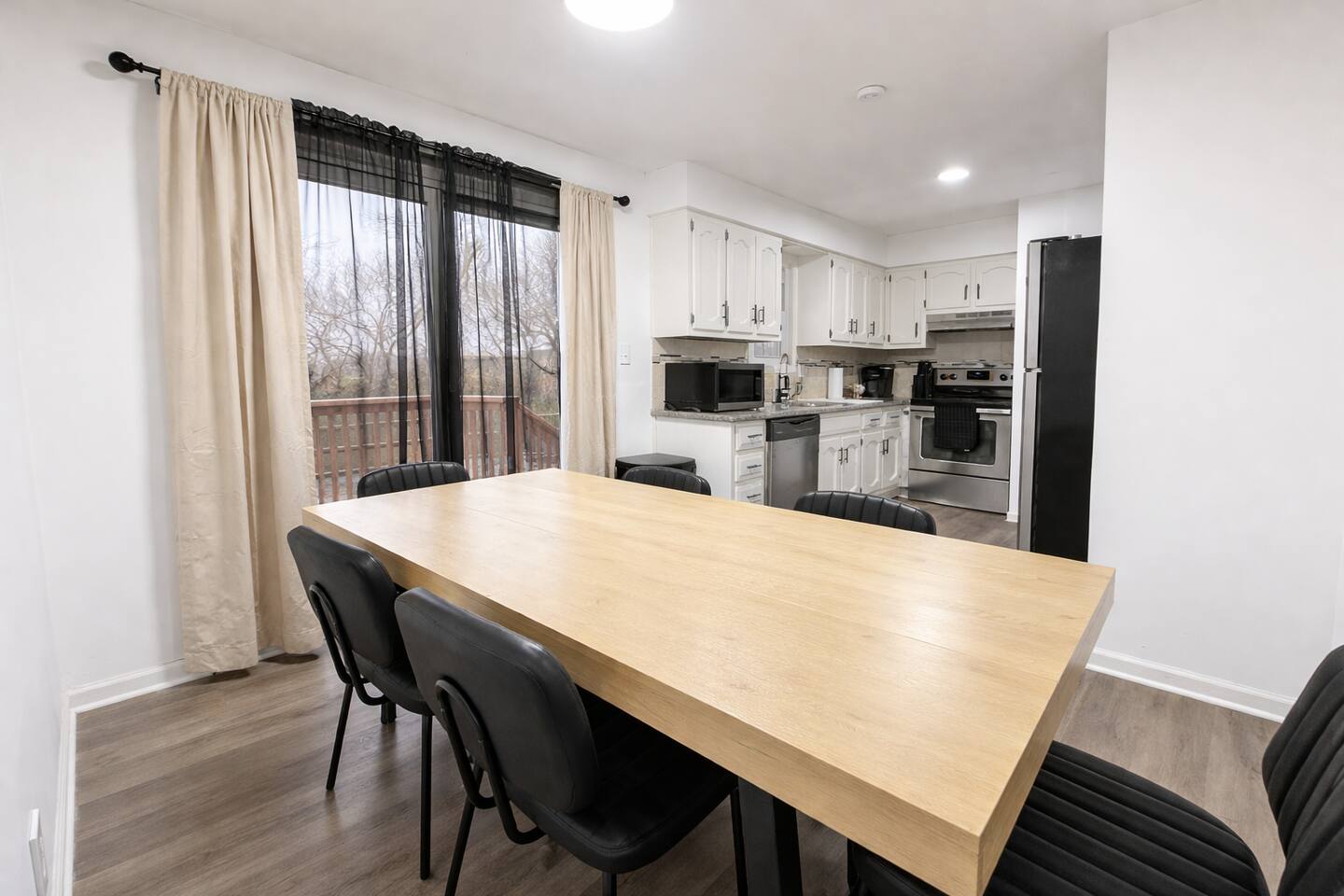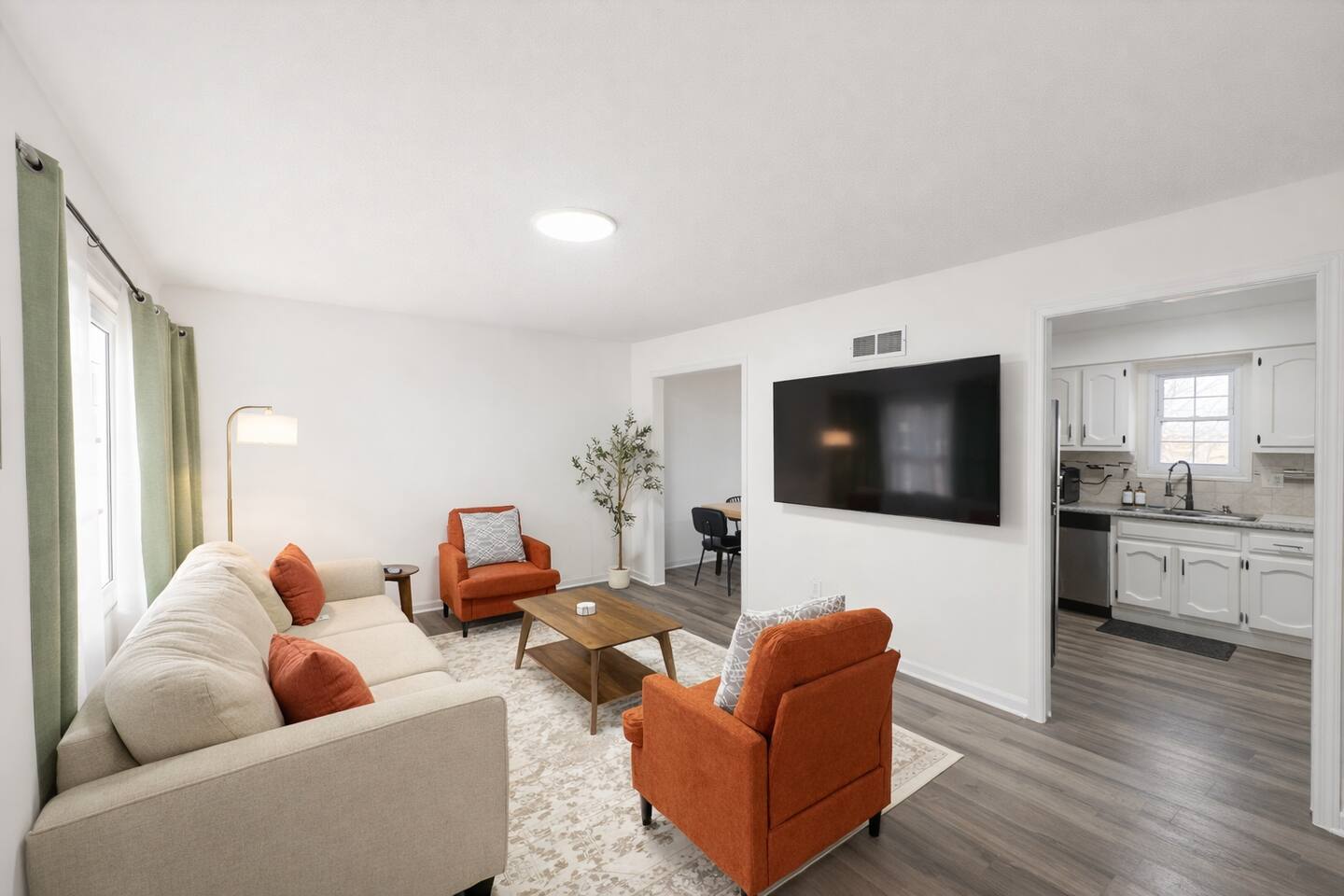 Discover this completely renovated, fully furnished executive rental in Gardner . This stunning 3 -story home features gorgeous curb appeal and a light, airy feel. With 4 bedrooms 1.5 baths, it offers ample space for the whole family. The home is fully furnished with all modern new furniture. A game room for the kids and adults. Large FIrepit in the backyard for events or just hanging out.